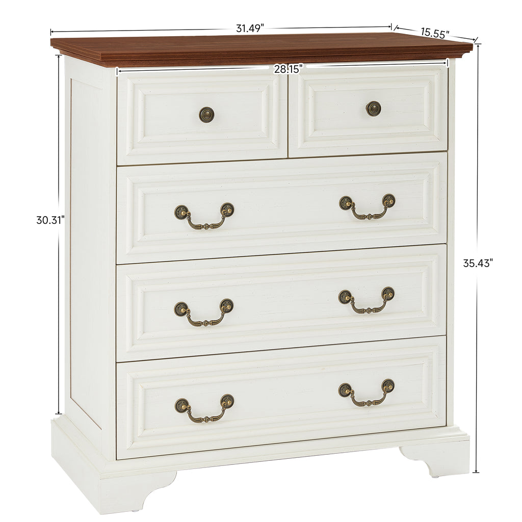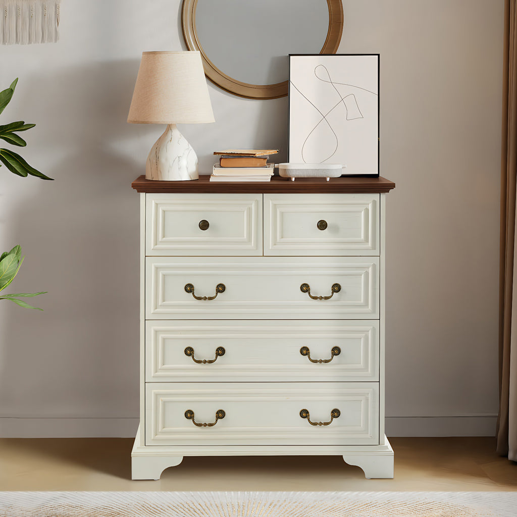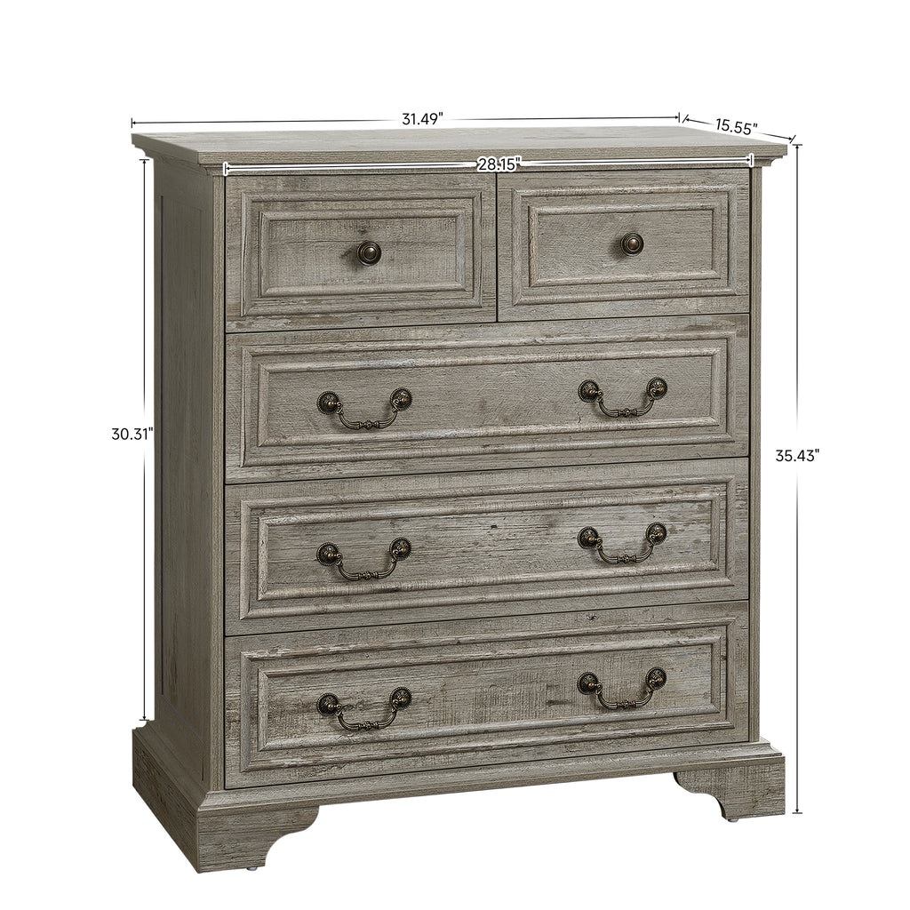 Unique Vintage Design Dressers - Embrace the beauty of vintage aesthetics with this 5-Drawer dresser. Designed with embossed textures and beveled edges on the furniture exterior, our dressers exude sophistication and elegance. The Roman column-style handle provides a classic finishing touch, making it the perfect storage solution for your bedroom essentials.