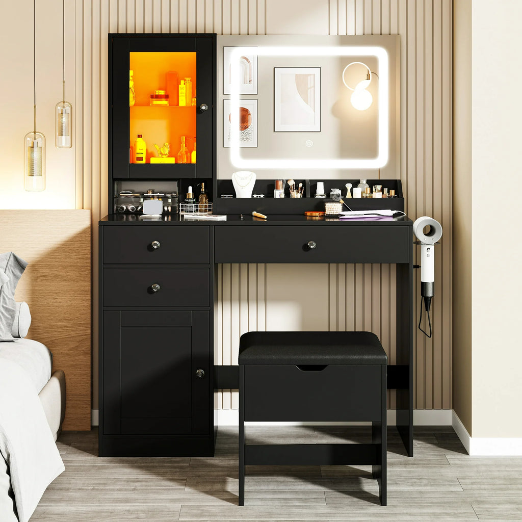 This UHOMEPRO bedroom vanity set provides a wide tabletop, 3 drawers, and storage shelves to efficiently manage your cosmetics, jewelry, and other small items, making your desktop look cleaner and tidier. Straight lines make this vanity attractive in simplicity. This vanity is also the best gift for your love on birthdays, Christmas, and other special days. The vanity table will make your life more convenient.
