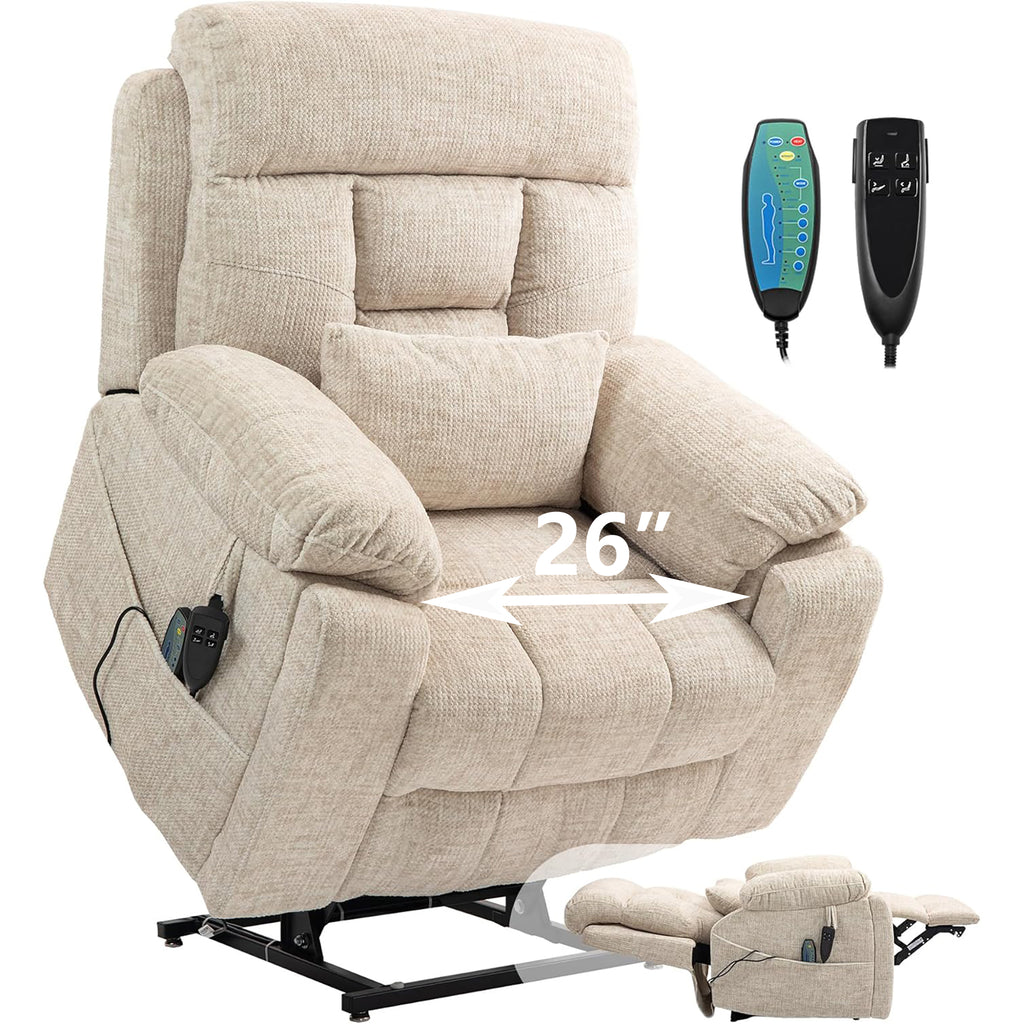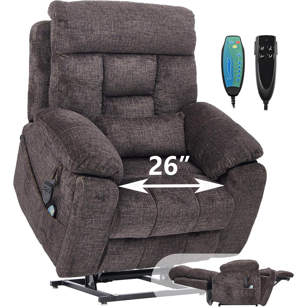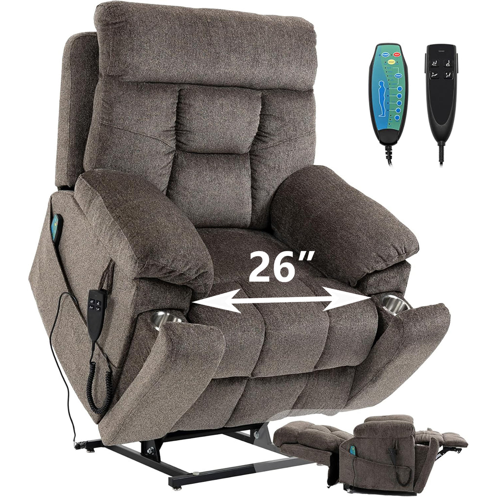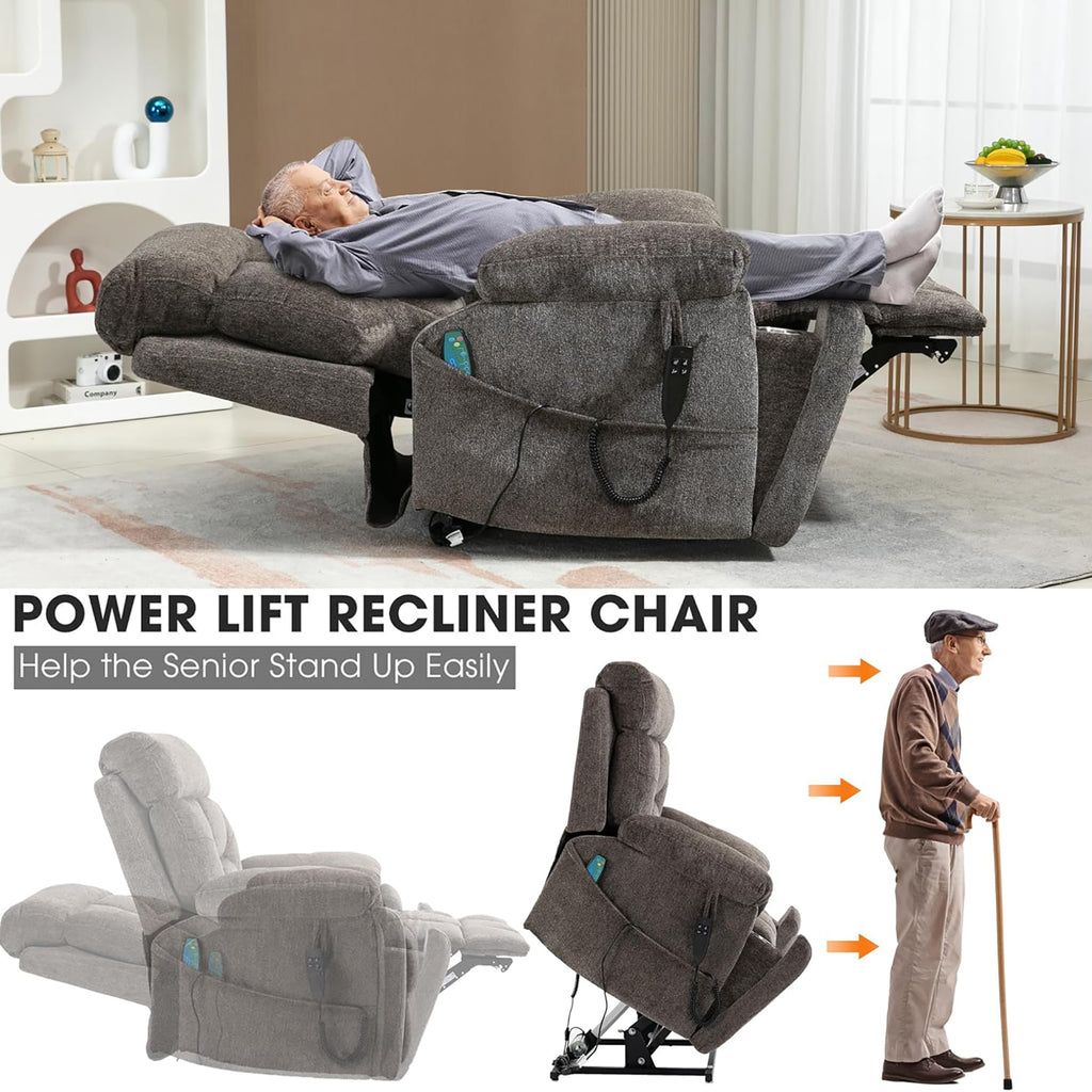 uhomepro large and wide seat power lift chairs with massage and heat is sturdy to support for an older individual of the capacity of 400lbs and easy to operate by a person with various daily living obstacles. The sturdy corner-blocked frame brings you a steel-reinforced seat, and provide a very comfortable sitting feel and enhances safety. What's more, the frame of the power lift recliner consisted of sturdy hardwood is built to last for long-term use.