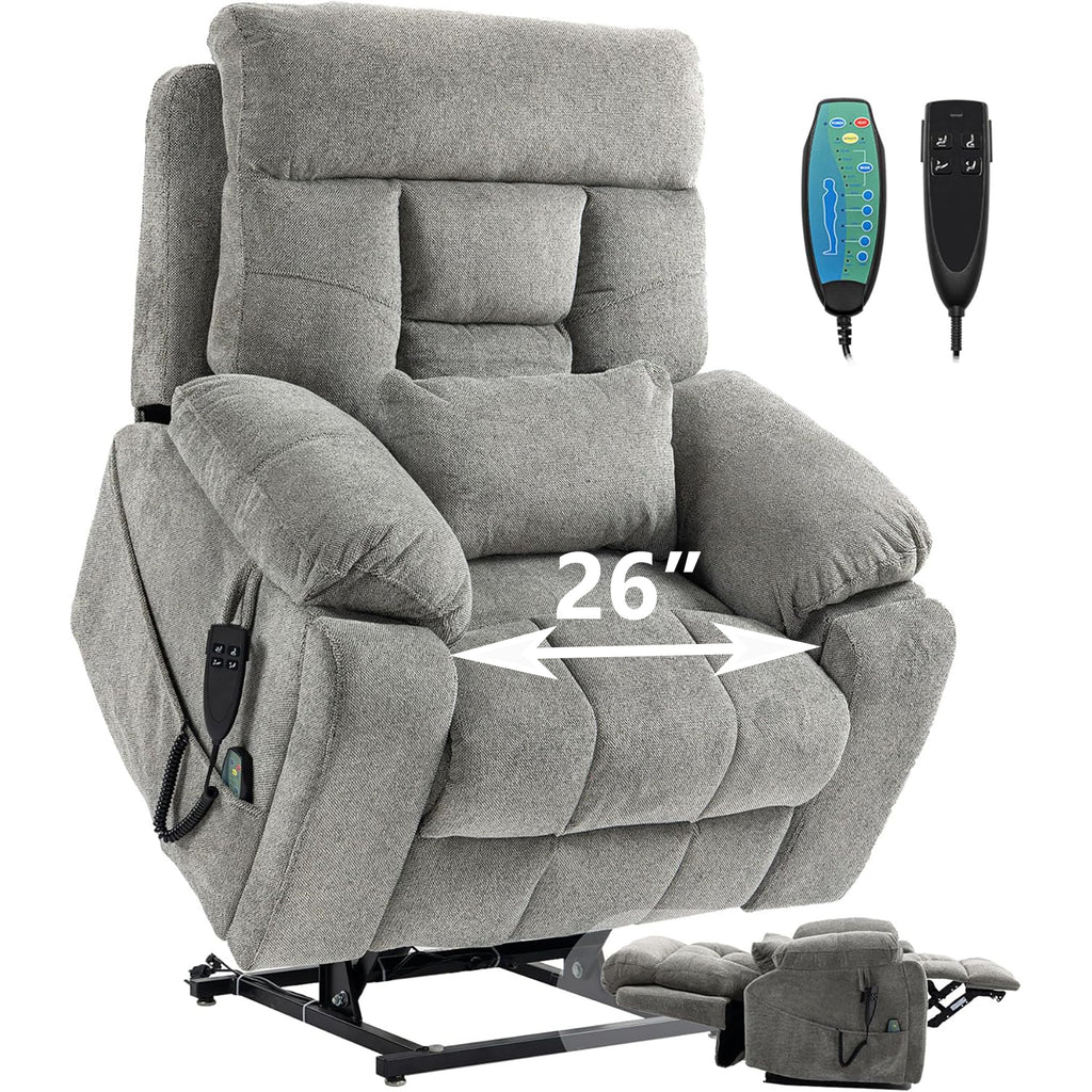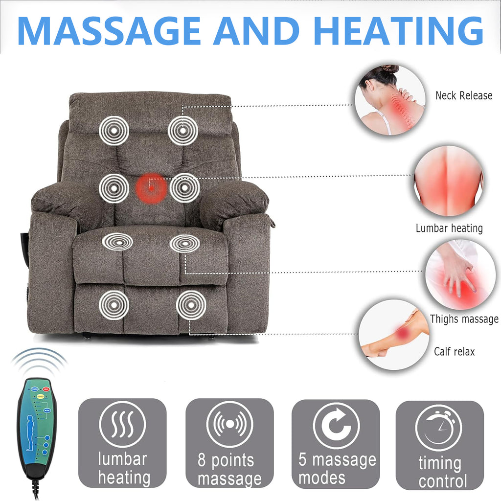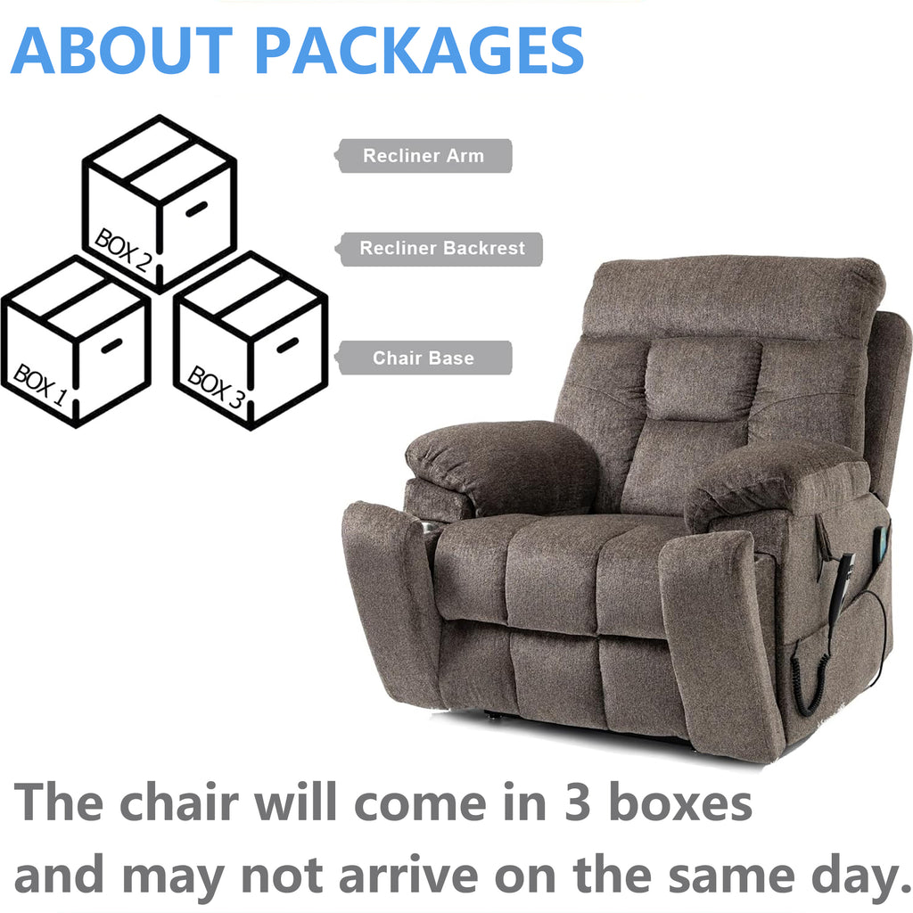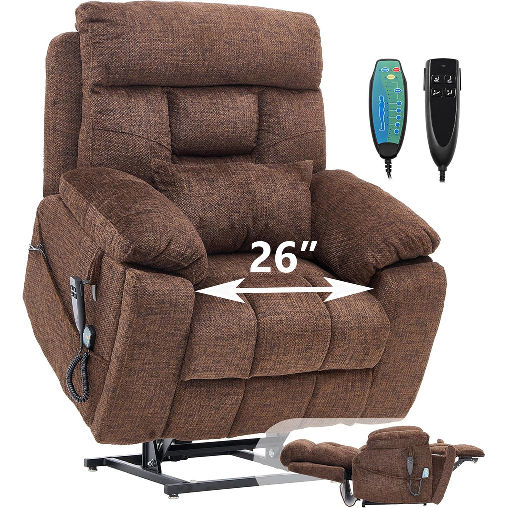 uhomepro large and wide seat power lift chairs with massage and heat is sturdy to support for an older individual of the capacity of 400lbs and easy to operate by a person with various daily living obstacles. The sturdy corner-blocked frame brings you a steel-reinforced seat, and provide a very comfortable sitting feel and enhances safety. What's more, the frame of the power lift recliner consisted of sturdy hardwood is built to last for long-term use.