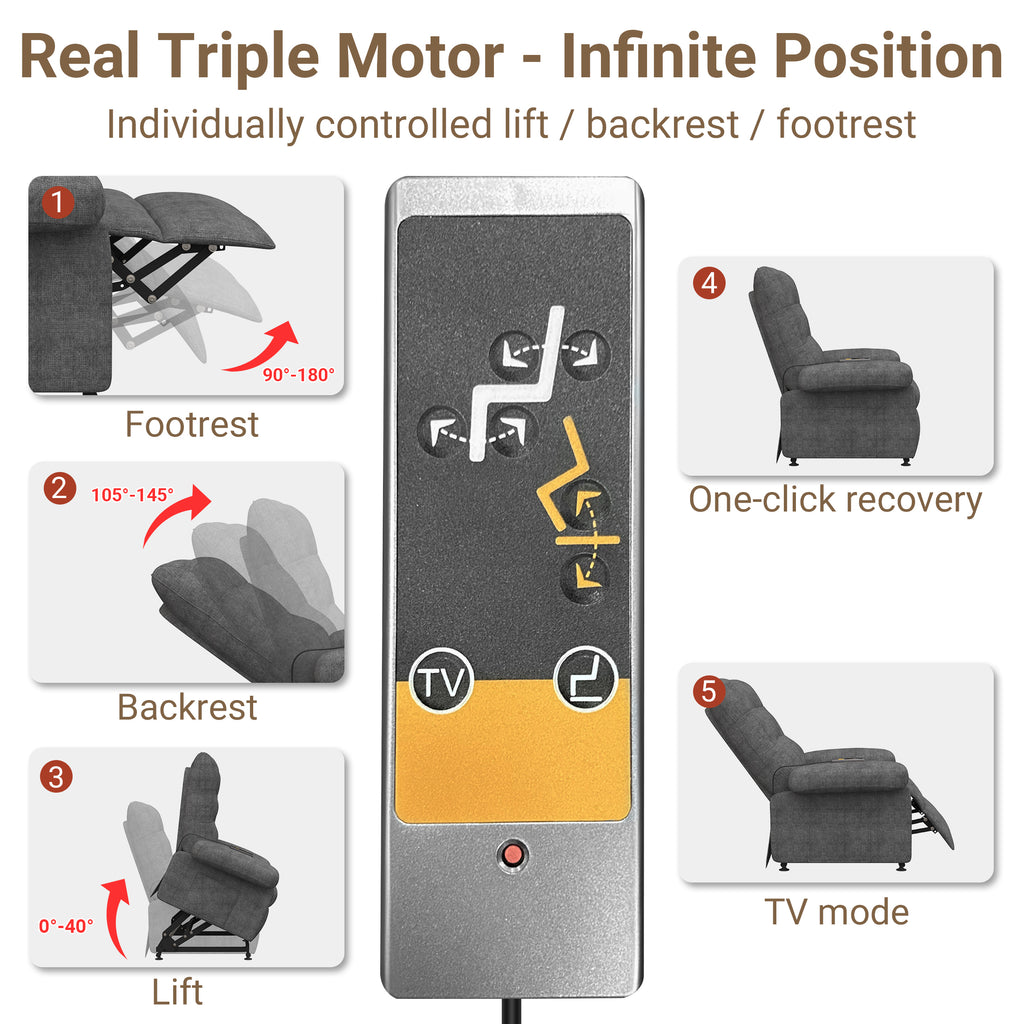 Effortless Mobility Perfect for the Elderly - The electric reclining mechanism and powerful lift function make it easy for the elderly and adults with limited mobility to transition from sitting to standing with just a touch of a button. Specially designed to assist the elderly and those recovering from injuries, this recliner alleviates stress on the back, waist, and knees, ensuring maximum convenience.