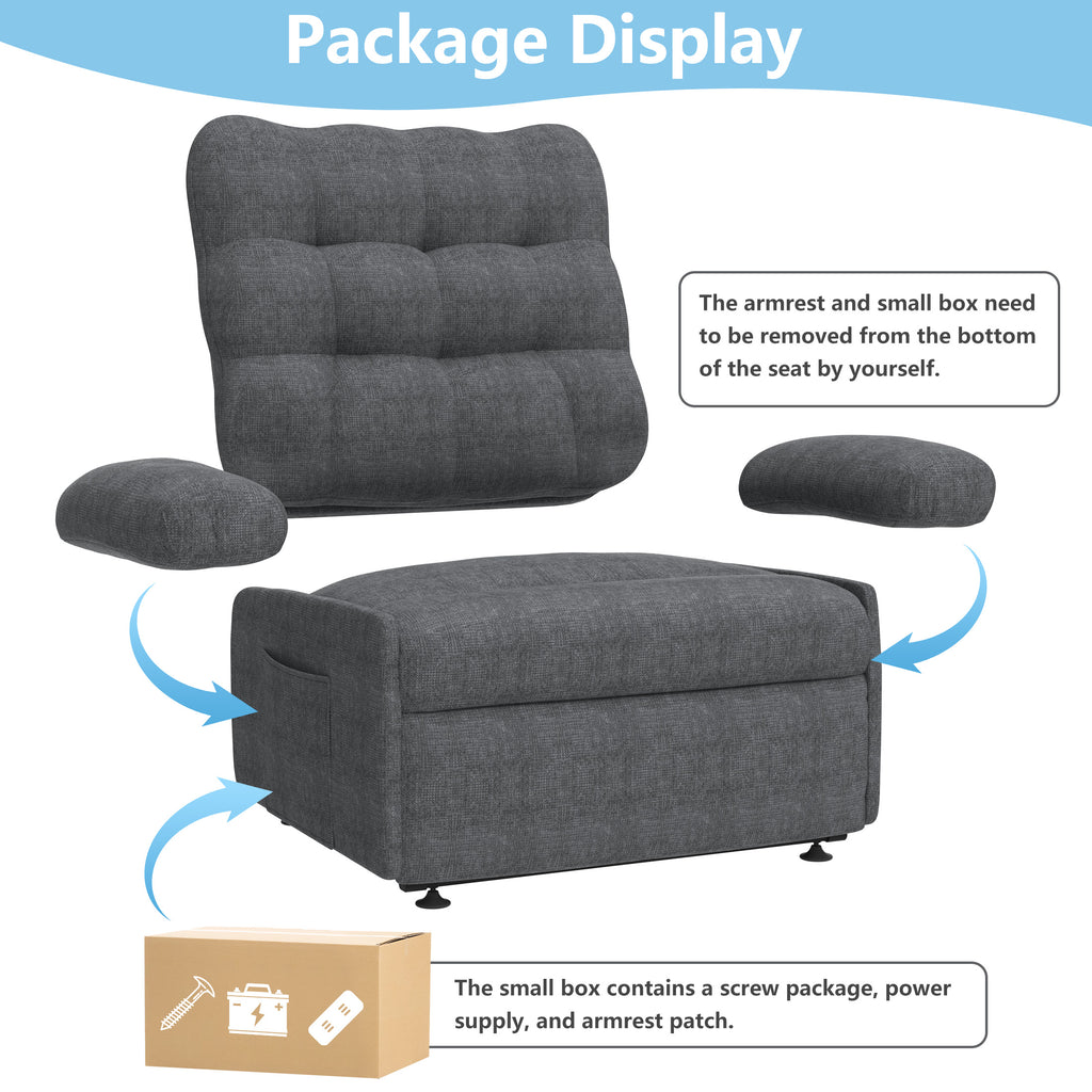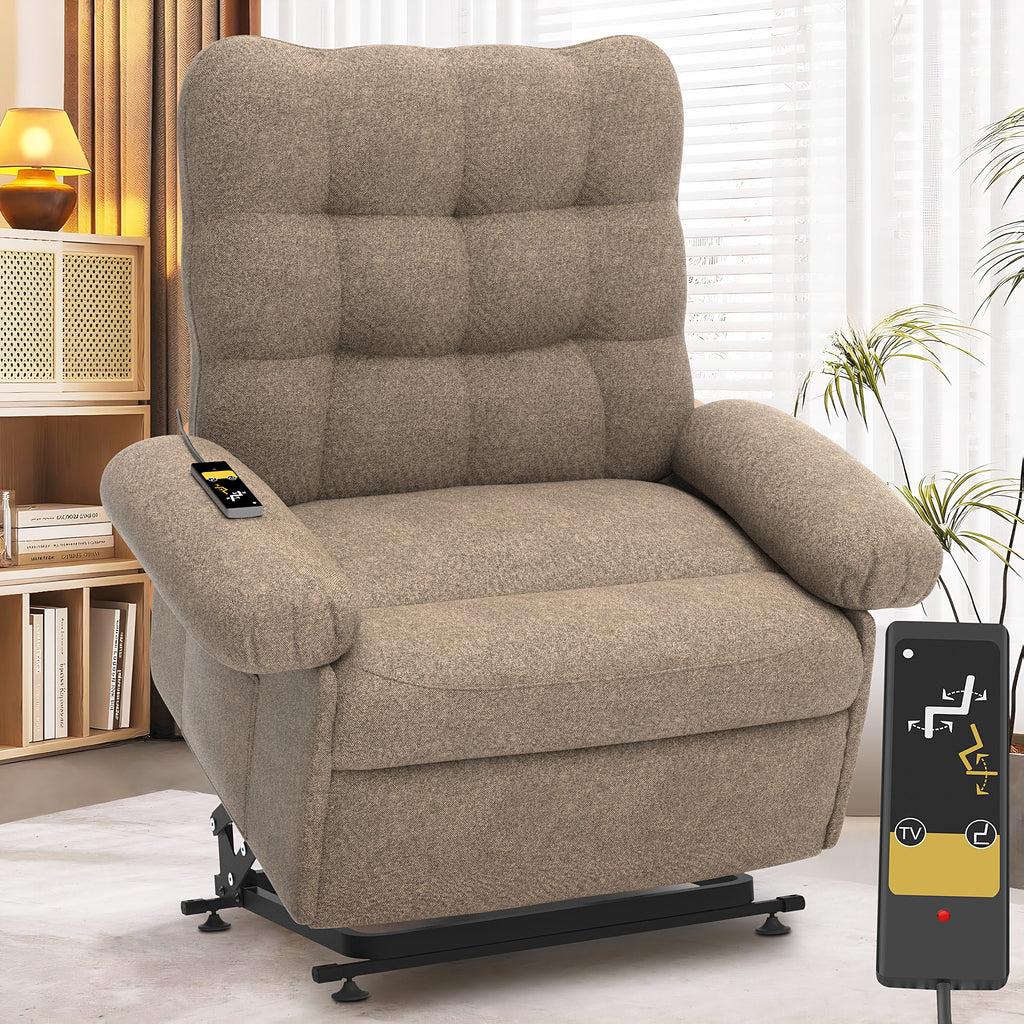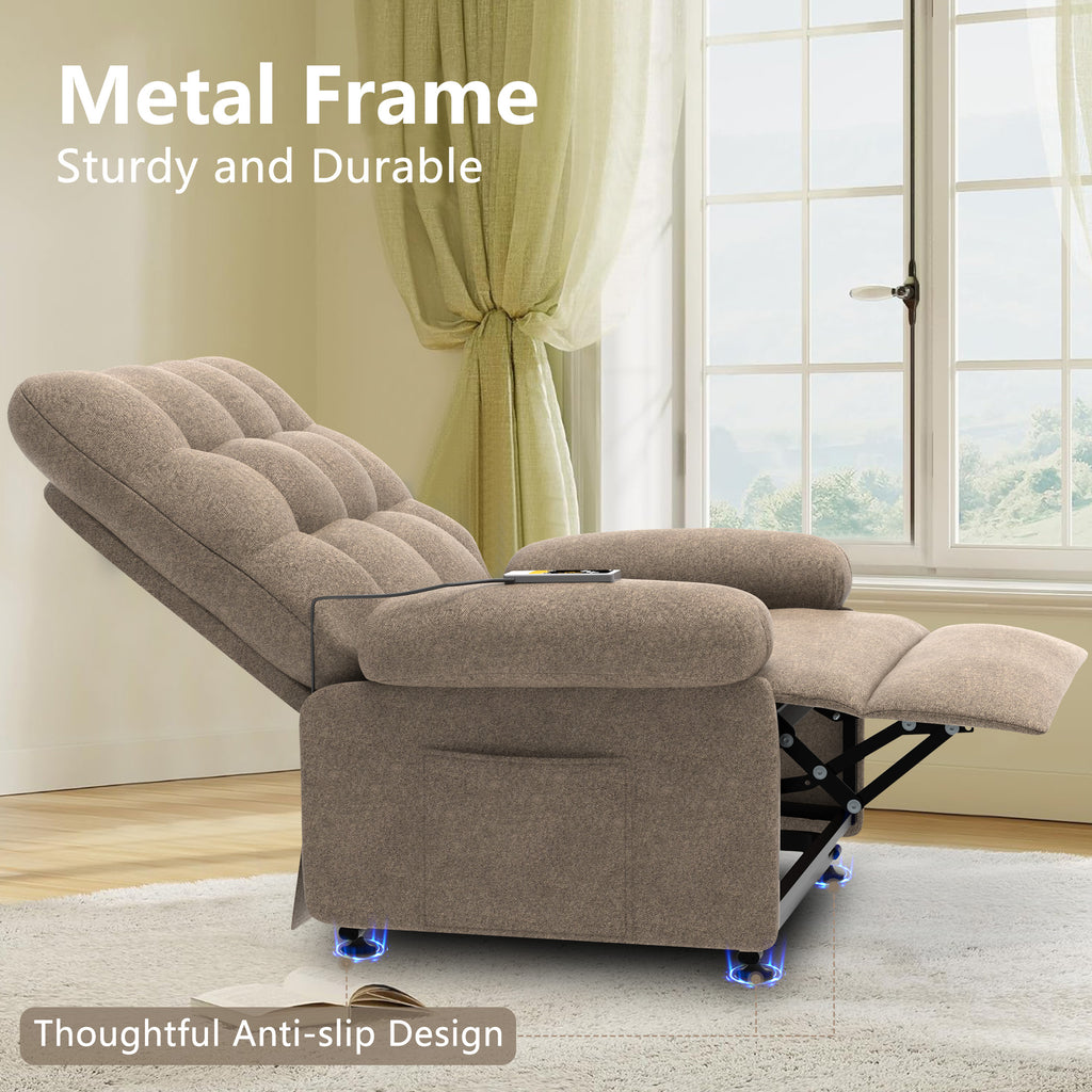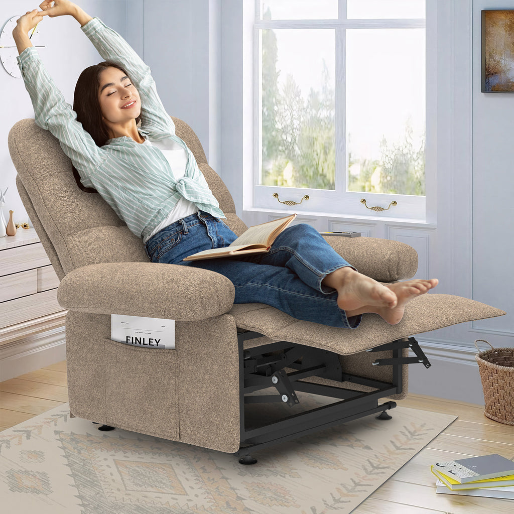 Designed with both style and functionality in mind, UHOMEPRO single sofa recliner offers infinite reclining positions, allowing you to find the perfect angle for relaxation, reading, or watching TV. The electric reclining mechanism ensures smooth and effortless adjustments at the touch of a button, making it especially ideal for those with limited mobility. Key features include infinite reclining positions for customized comfort, a powerful lift function to transition from sitting to standing, convenient side pockets for storing essentials, plush cushioning for a cozy and supportive seating experience, and a stylish design to enhance your living space. Upgrade your relaxation experience with the Power Lift Recliner Chair, where comfort meets convenience in perfect harmony.