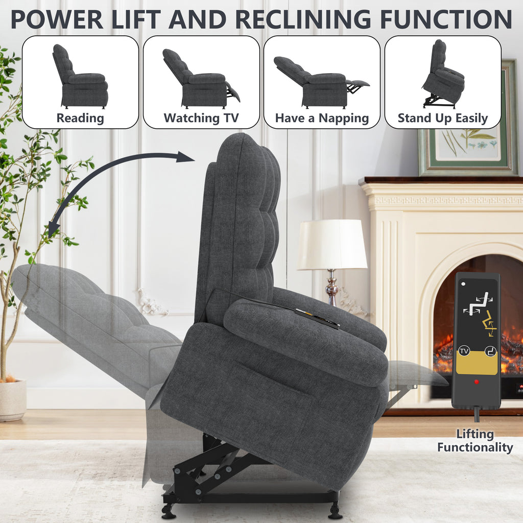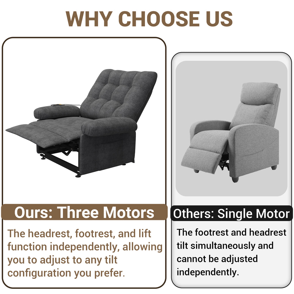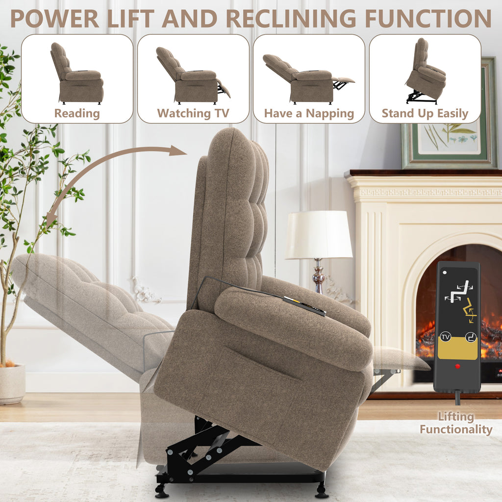 Infinite Reclining Comfort - Experience unparalleled relaxation with our Power Lift Recliner Chair, offering infinite reclining positions to find your perfect angle for reading, napping, or watching TV. It features a thickened headrest, armrests, and cushions. The extra-wide and reinforced backrest and footrest provide ample support when reclining, eliminating any feelings of crowding or discomfort.