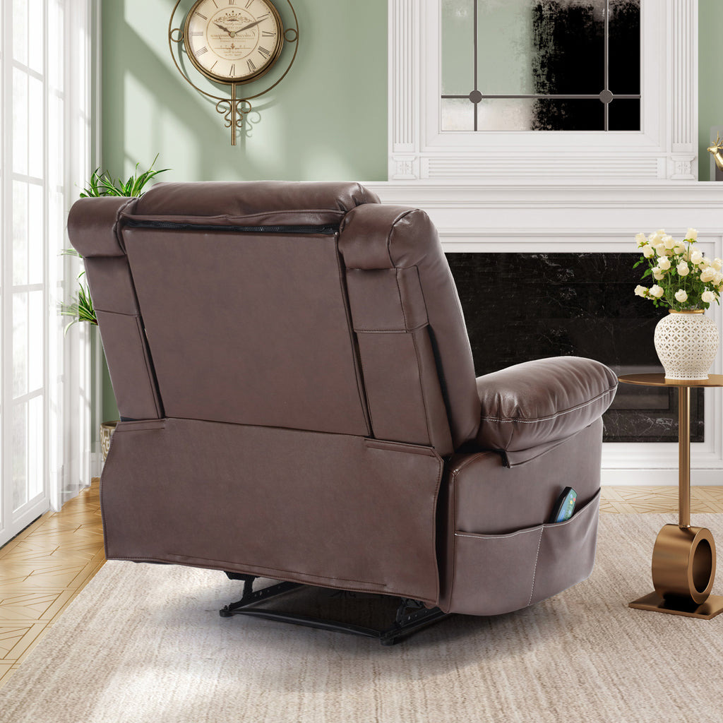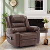 Upgrade your home relaxation experience with the exquisite UHOMEPRO Breathable Leather Massage Recliner – a fusion of style, comfort, and innovative technology that redefines luxury lounging. This oversized manual recliner chair is the epitome of indulgence, offering a sanctuary for your body and mind to unwind after a long day. Crafted with premium breathable leather, this recliner chair ensures a soft and luxurious touch that feels divine against your skin. Its unique breathability feature helps regulate temperature, keeping you cool and comfortable even during warmer seasons. The sleek and elegant design not only adds a touch of sophistication to your living space but also blends seamlessly with any interior decor. Experience personalized comfort at its finest with the ability to adjust the chair's angle from 90° to 160°. Whether you're lounging, reading, watching TV, or simply dozing off, find the perfect recline position that caters to your every need. The smooth manual recline mechanism makes adjustments effortless, allowing you to sink into a world of pure relaxation with ease. Elevate your relaxation routine with the massage function. Indulge in soothing vibrations that target your tired muscles, melting away stress and tension. The massage feature is a delightful addition that enhances your overall well-being, leaving you feeling refreshed and rejuvenated. Thoughtfully designed with practicality in mind, the UHOMEPRO Breathable Leather Massage Recliner boasts spacious side pockets, ideal for storing your remote, books, magazines, or other personal items. This convenient feature keeps everything you need within arm's reach, making relaxation even more seamless. Invest in the ultimate in-home relaxation station with the UHOMEPRO Breathable Leather Massage Recliner. It's the perfect blend of style, comfort, and technology that promises to become your favorite spot for unwinding. Experience unparalleled luxury and indulgence every day – your well-deserved sanctuary awaits.