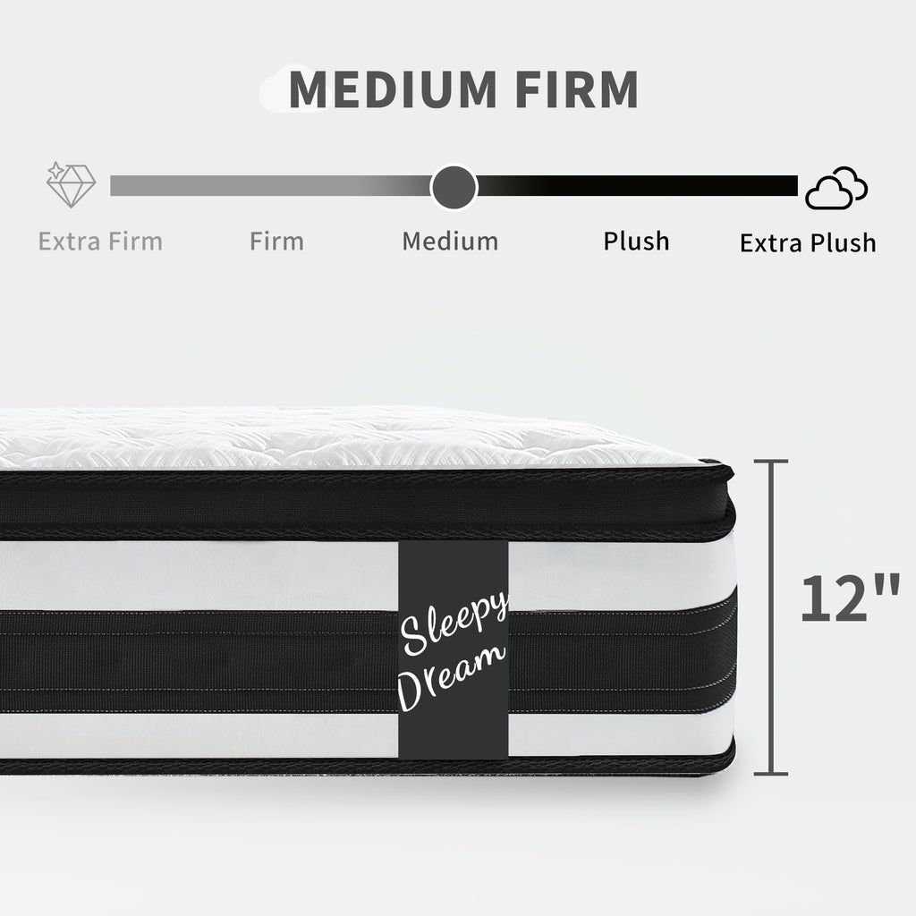 Discover the ultimate sleep experience with our Queen Mattress in a Box, meticulously crafted to deliver blissful comfort and support. This 12-inch Hybrid Mattress with memory foam is engineered to provide exceptional pressure relief, contouring to your body's unique shape to alleviate pressure points and ensure a restful night's sleep. The advanced motion isolation technology ensures that you and your partner can enjoy undisturbed slumber, even with different sleep schedules or movements. Our innovative individual pocket spring design combines the best of both worlds, offering the plush comfort of memory foam with the resilience and support of traditional innersprings, all wrapped up in a medium-firm feel that caters to a wide range of sleep preferences. This Mattress is made of luxurious, breathable materials and is Fiberglass-Free, which keeps you cool and dry throughout the night while minimizing skin irritation. With both CertiPUR-US and Oeko-TEX certifications, you can rest easy knowing your mattress meets stringent safety and environmental standards, providing a healthier sleep environment for you and your family.