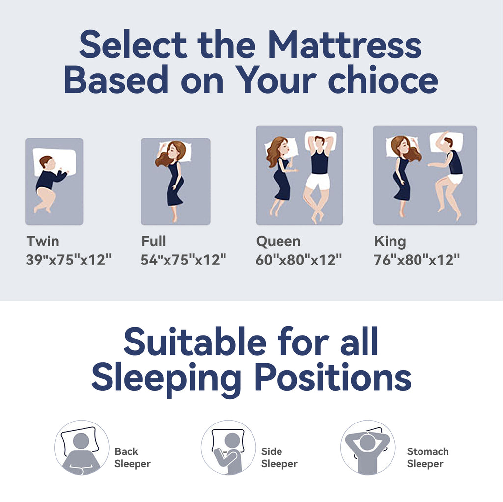 PERFECT FIT AND SPINE PROTECTION - Achieve the perfect night's rest with our 12 inch mattress, expertly designed to protect your spine and relieve pressure at every point—head, back, waist, hips, legs, and feet. Experience 90% back pain relief and fall asleep 49% faster, while enjoying 38% more deep sleep. With superior body contouring and enhanced support, wake up refreshed and pain-free.