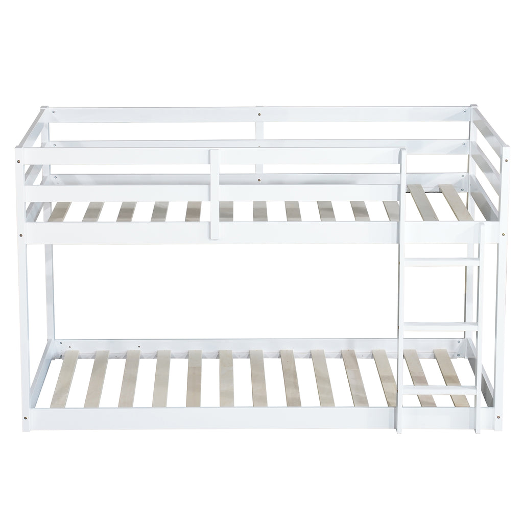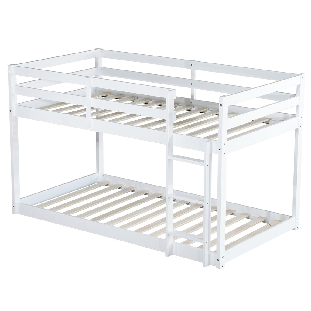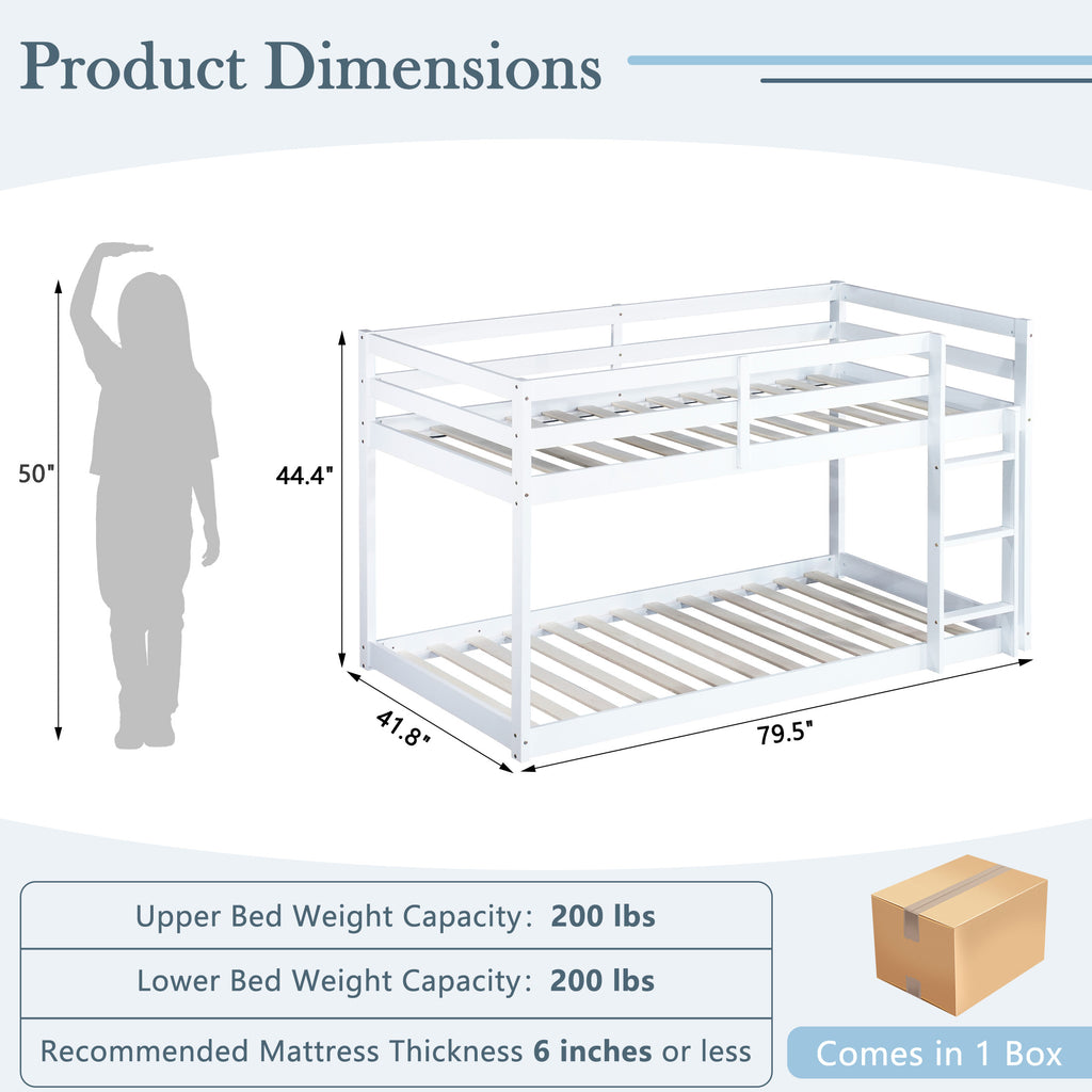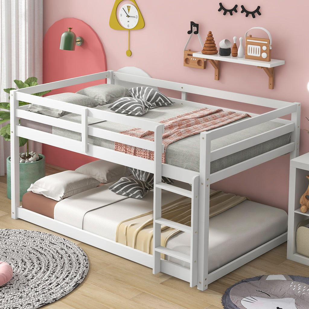 • MODERN STYLE FOR WIDE APPLICATION - This Floor Twin Over Twin Bunk Bed is in a modern style, which adds a unique charm to your bedroom. Meanwhile, the concise design allows the Twin Over Twin Bunk Bed to match a variety of home decorations. It can be used in bedrooms, children's rooms, dormitories, apartments, or other places with compact space.