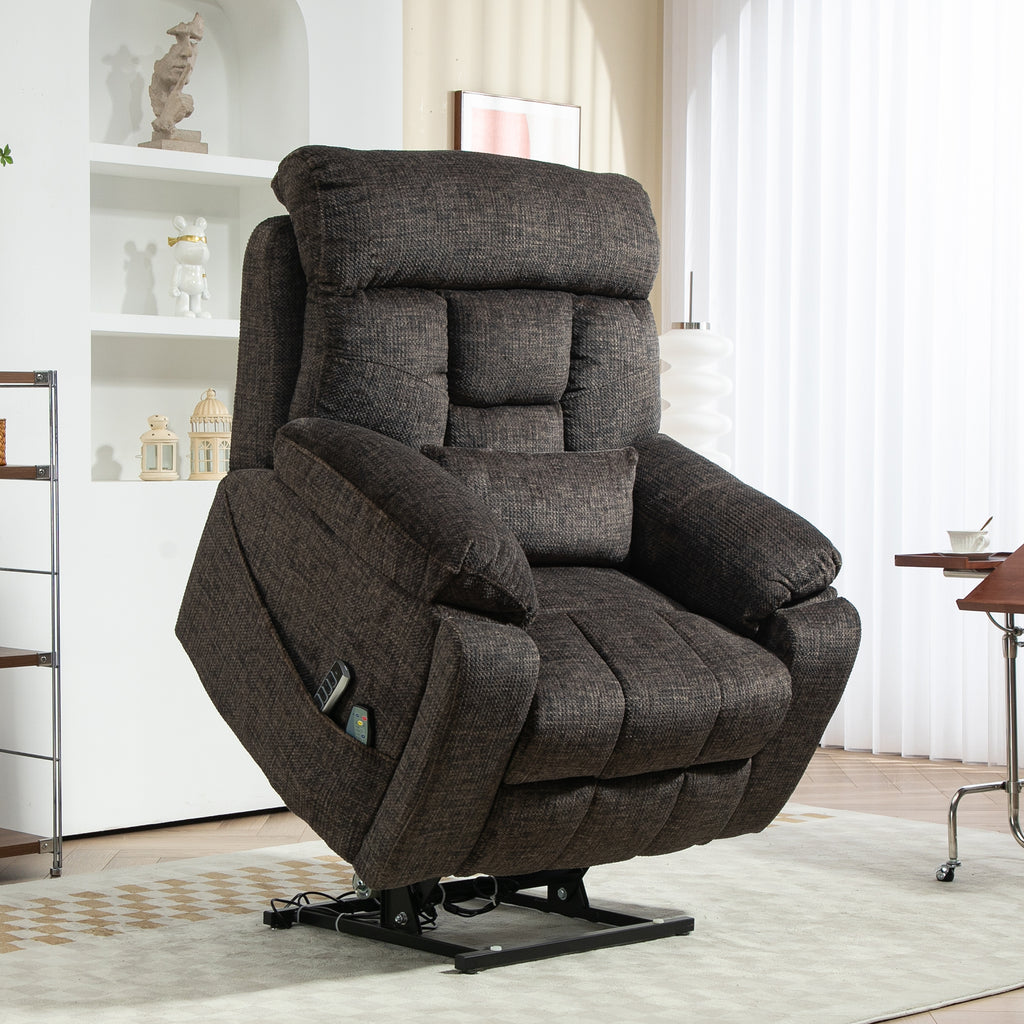 Unleash ultimate relaxation and luxury with the UHOMEPRO 4 OKIN Silent Lift Motor Recliner Chair – the epitome of comfort and convenience. This premium recliner chair combines cutting-edge technology with impeccable craftsmanship, offering a luxurious experience that's tailored to your every need. Experience the smoothest and quietest lift mechanism on the market, powered by four state-of-the-art OKIN motors. Say goodbye to noisy disruptions and hello to seamless transitions from sitting to standing, ensuring a peaceful and stress-free environment for all users. Indulge in the therapeutic bliss of integrated heating and massage functions. With multiple intensity levels and modes, this chair targets your tired muscles, providing deep relaxation and rejuvenation. Whether you're recovering from a long day or simply looking to unwind, the UHOMEPRO recliner chair has got you covered. Stay organized and enjoy the ultimate convenience with pillow pocket cup holders and a spacious side pocket. Keep your favorite reading materials, remote controls, and beverages securely within reach, allowing you to fully immerse yourself in relaxation without any distractions. Experience personalized comfort like never before with a full range of reclining positions. Effortlessly tilt back to 180 degrees and find your perfect angle – whether you're lounging, watching TV, or catching up on some well-deserved rest. The dual remote control feature allows for even greater flexibility and convenience, ensuring everyone in the family can enjoy the chair to their liking. Crafted with meticulous attention to detail, the UHOMEPRO 4 OKIN Silent Lift Motor Recliner Chair boasts a sleek and elegant design that complements any living space. Its high-quality materials, including durable upholstery and sturdy construction, ensure long-lasting durability and comfort.