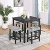 Complete your space with this industrial 5-piece kitchen table set featuring a rustic counter-height bar table and four matching upholstered stools. Crafted with high-quality imitation wood grain surfaces and sturdy MDF construction, this durable pub table set comfortably seats four while maximizing small spaces. The stools feature tactile soft fabric with high-elasticity foam cushions for ergonomic comfort and tuck completely beneath the table when not in use. Perfect for kitchens, apartments, bistros, and game rooms, this set arrives in ISTA 3A certified packaging for easy assembly and immediate use.