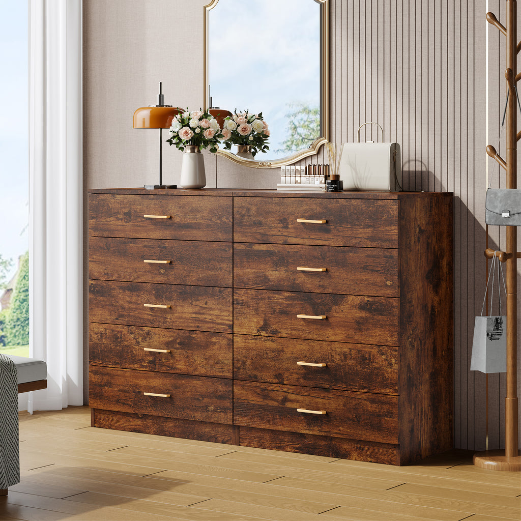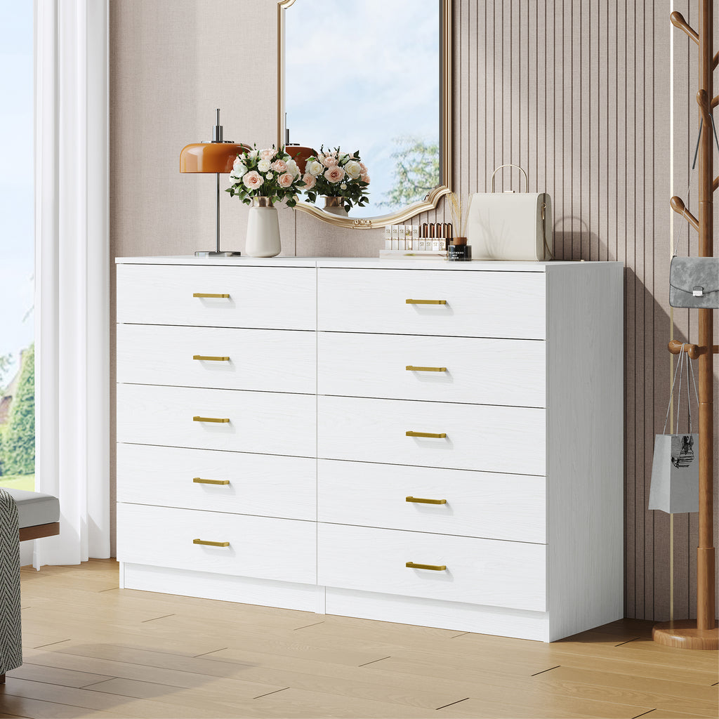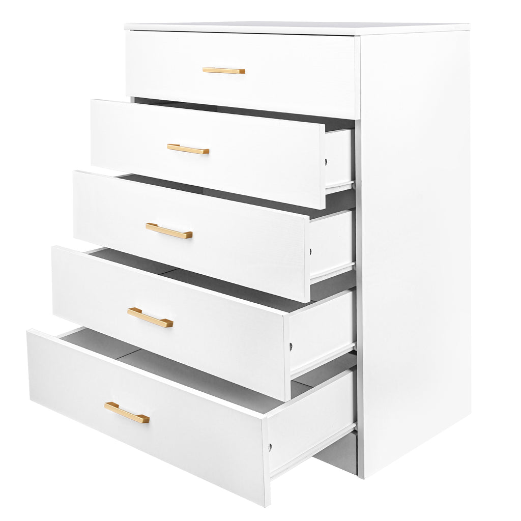 UHOMEPRO 5-drawer dresser is made of an E1 grade 15mm particle board which provides strong support for itself, the 5 large drawers can be used to hide various sundries. And the wooden tabletop offers a hard surface for display lamps, alarm clocks, books, glasses charging stations, etc.