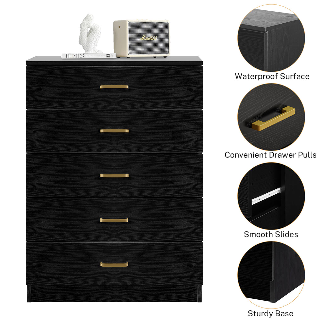 UHOMEPRO Black 5 Drawer Dresser, Chest of Drawers for Bedroom, Modern Storage Cabinet Dresser Organizer Unit with Handle for Living Room, Closet, Hallway, Nursery