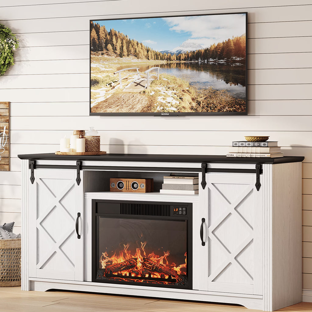 Realistic Electric Fireplace with Cozy Warmth: Enjoy the ambiance of a flame effect and comforting, energy-efficient heat with the built-in electric fireplace. It's the perfect wall-mounted fireplace alternative, creating a warm and inviting atmosphere in your bedroom or living room during colder months.