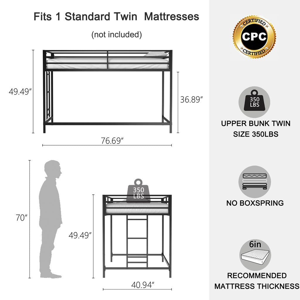 Transform your child's bedroom into a fun and functional space with the uhomepro Junior Twin Loft Bed. Crafted from sturdy metal, this classic square loft bed is designed to maximize space while providing a secure and comfortable sleeping area. Moreover, this Junior Twin Loft Bed higher junior loft bed than most the loft bed on the market, with more storage space under the bed.