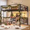 Maximize your space with this innovative Metal Loft Bed featuring an integrated study desk and smart LED lighting system. This versatile bed frame combines sleeping, working, and storage solutions in one compact unit, complete with 4 storage shelves, a convenient charging station, and a practical clothes rail. The loft bed frame's DIY mesh panels allow for personalization, while the safety guardrail ensures secure elevated sleeping. Perfect for dorm rooms, apartments, and teens' bedrooms, this loft bed eliminates the need for a box spring while providing multiple functional areas in your limited space.