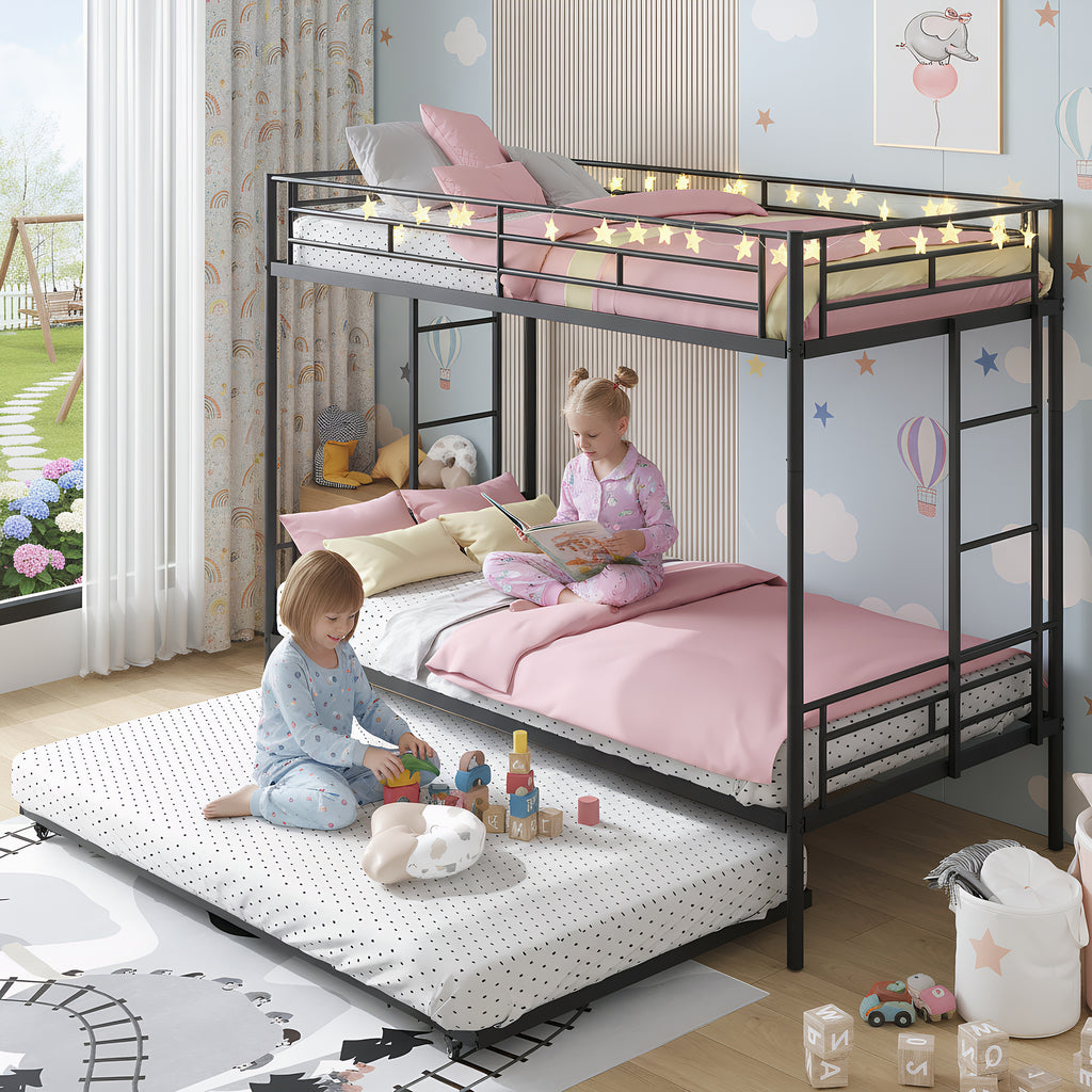 Multi-Functional Use - Whether for a dorm room, a kids’ room, worker's dormitory, or a spare room, our Bunkbeds can be used for lots of different spaces. The space-saving design of our Twin Over Twin Bunk Bed with Trundle is the ideal configuration for a compact home.