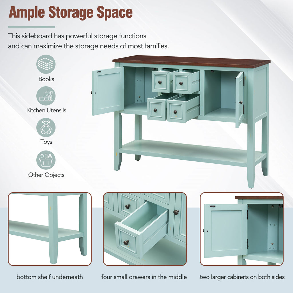 [Expanded Multi-Zone Storage] - Designed with four drawers, a double-door cabinet, and a bottom shelf, this piece maximizes home organization as a console table, console table with storage, entryway table, and console table with drawers.