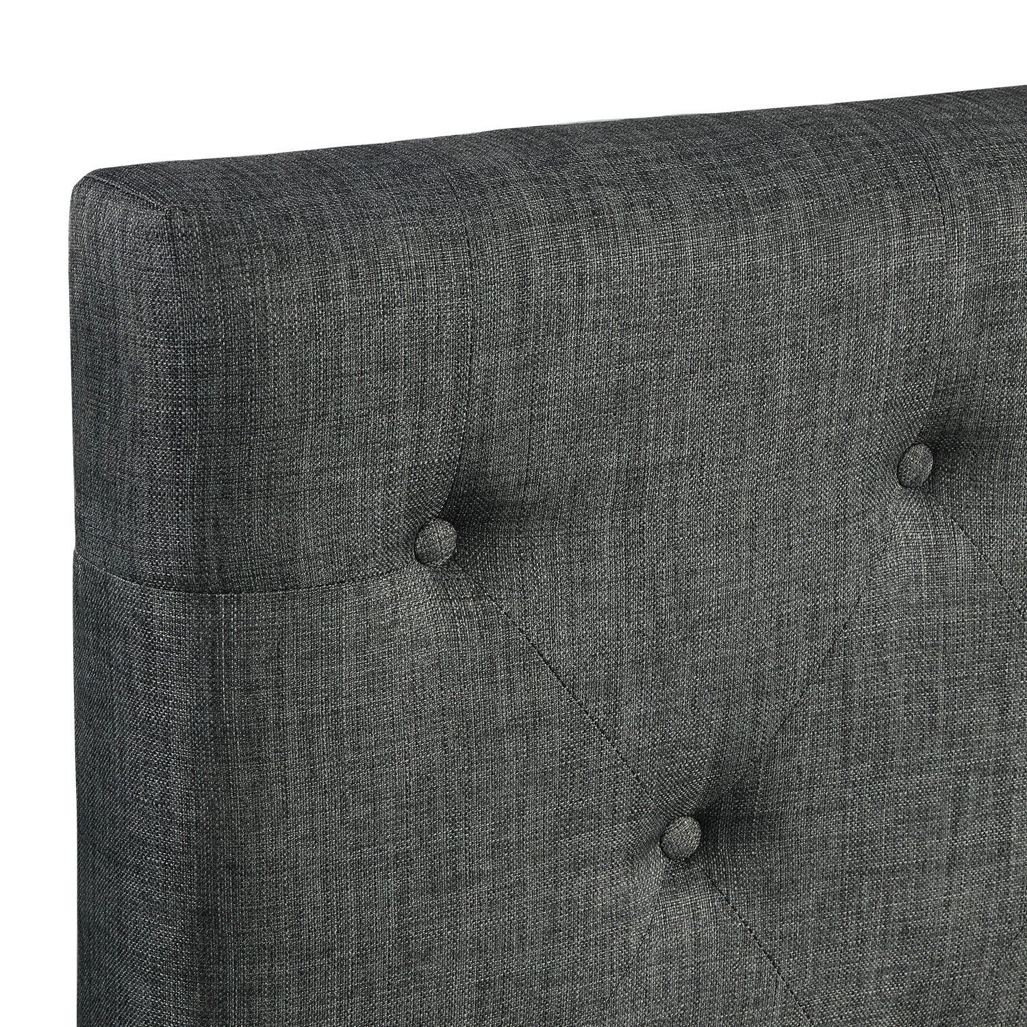 With gray upholstered button tufted headboard design, this twin size bed frame with headboard could better place your mattress and quilt. The rectangular headboard of the bed frame with headboard is defined with stitched details for a charming and refined appearance, while the overall frame features a classic high rise headboard and low profile footboard. In addition, the twin bed frame's headboard allows you to sit comfortably there, perfect for sitting on this bed to read the books or playing an iPad.